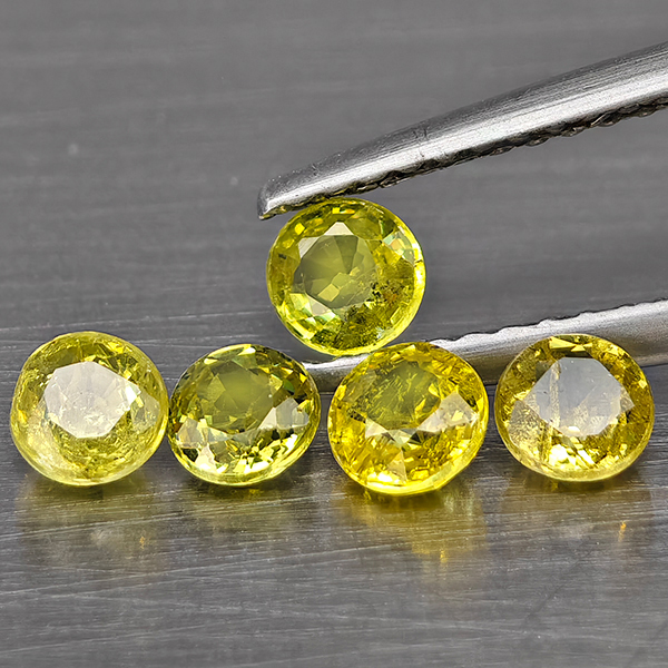 Natural Greenish Yellow Titanium Sphene Rainbow Spark 1.97 Ct. 5 Pcs Round Shape 4 Mm Gemstones