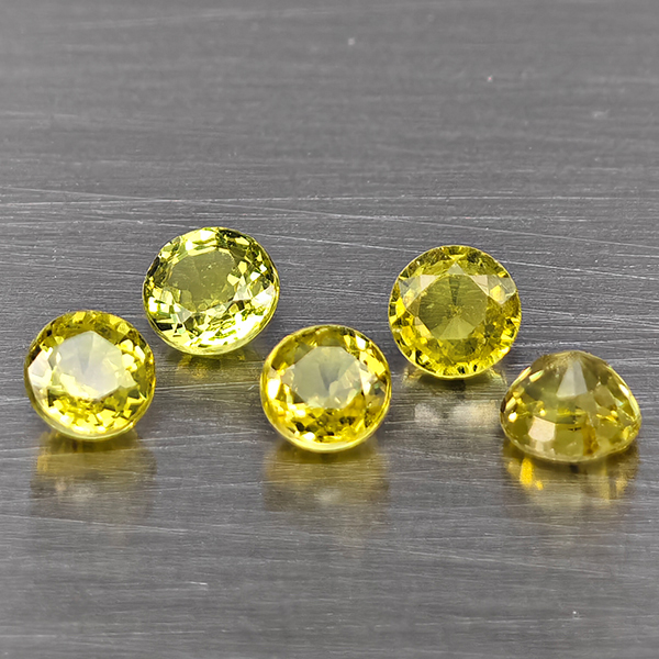 Natural Greenish Yellow Titanium Sphene Rainbow Spark 1.85 Ct. 5 Pcs Round Shape 4.2 Mm Gemstones