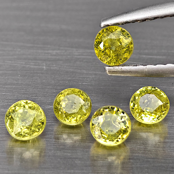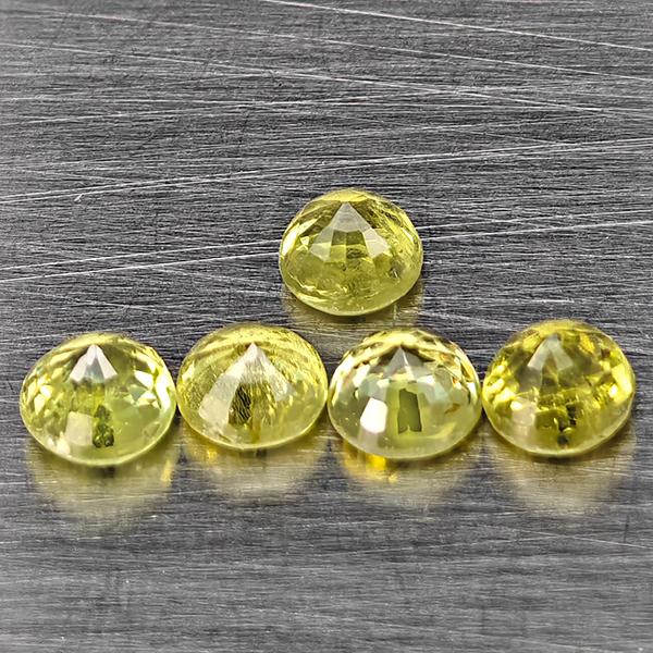 Natural Greenish Yellow Titanium Sphene Rainbow Spark 1.74 Ct. 5 Pcs Round Shape 4.2 Mm Gemstones