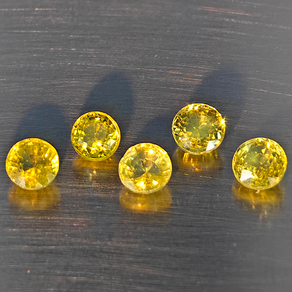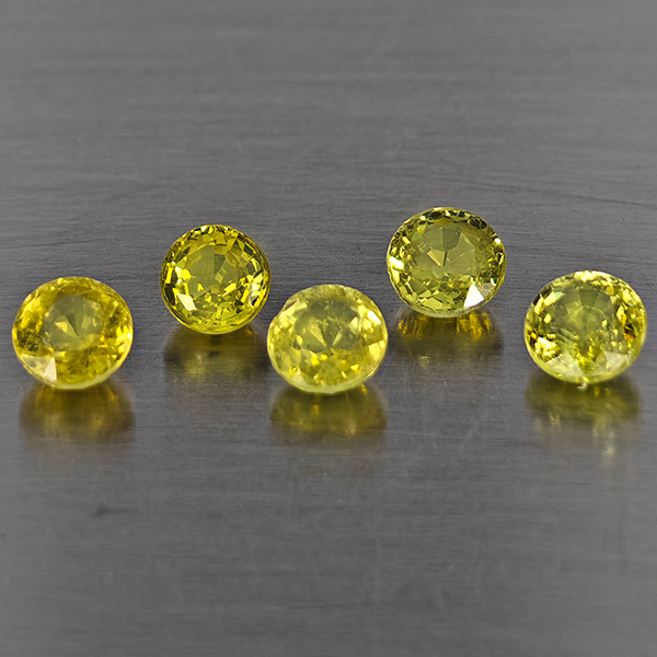 Natural Greenish Yellow Titanium Sphene Rainbow Spark 1.66 Ct. 5 Pcs Round Shape 4.1 Mm Gemstones