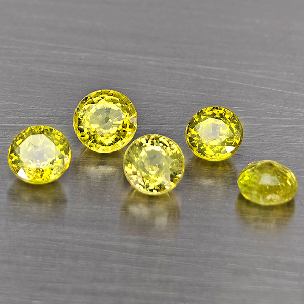 Natural Greenish Yellow Titanium Sphene Rainbow Spark 1.85 Ct. 5 Pcs Round Shape 4.2 Mm Gemstones