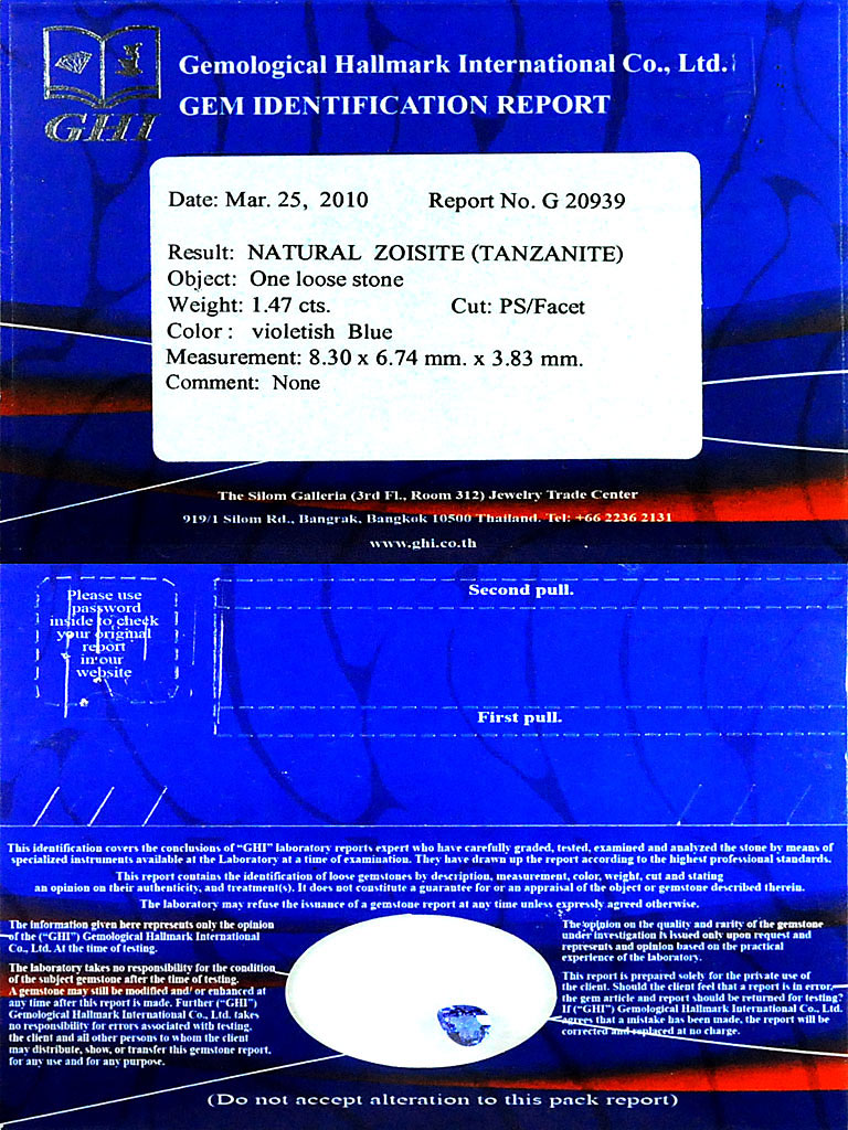 Certified Violetish Blue Tanzanite 1.47 Ct Pear Shape 8.30 x 6.74 Mm Natural Gem
