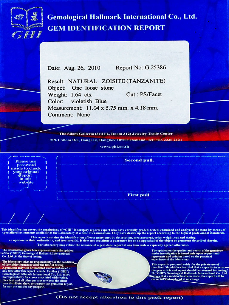 Certified 1.64 Ct. Clean Pear Shape Natural Gem Violetish Blue Tanzanite