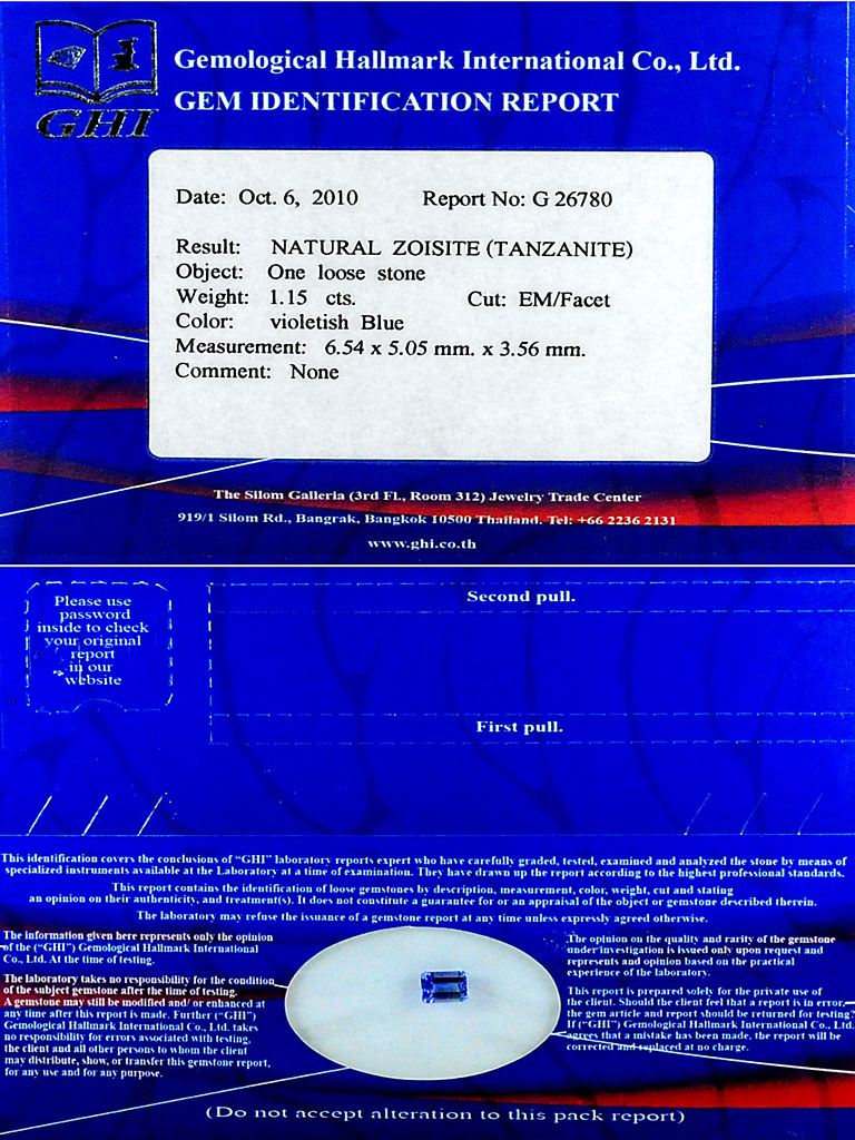 1.15 Ct. Octagon Natural Gamstone Violet Blue Tanzanite From Tanzania
