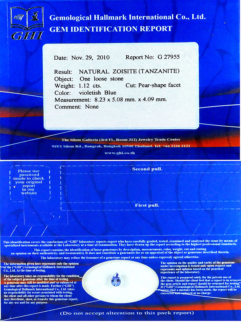 Certified 1.12 Ct. Pear Shape Natural Gem Violetish Blue Tanzanite From Tanzania
