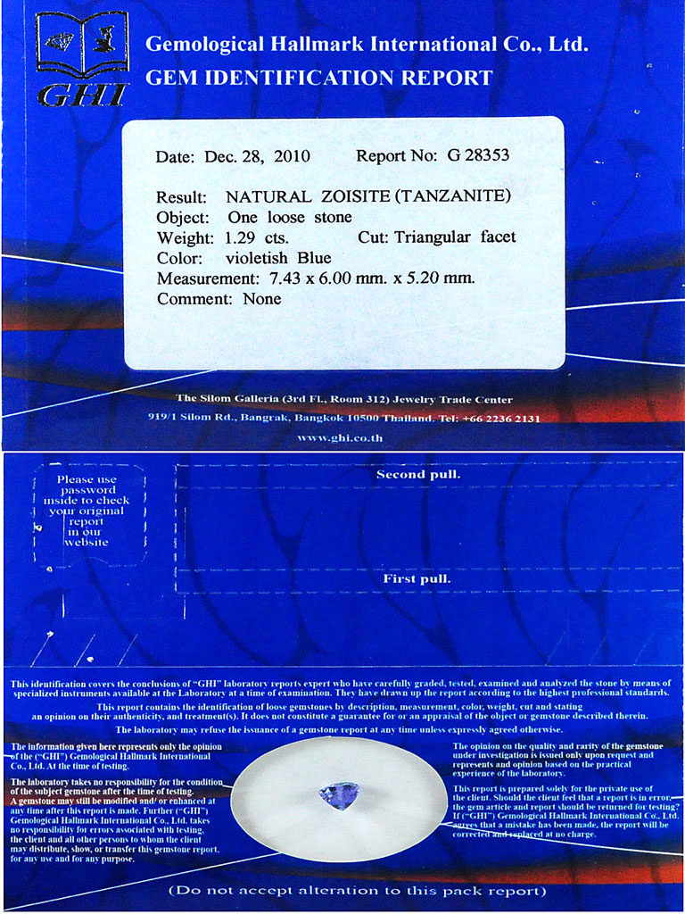 Certified 1.29 Ct. Clean Natural Gem Violetish Blue Tanzanite From Tanzania