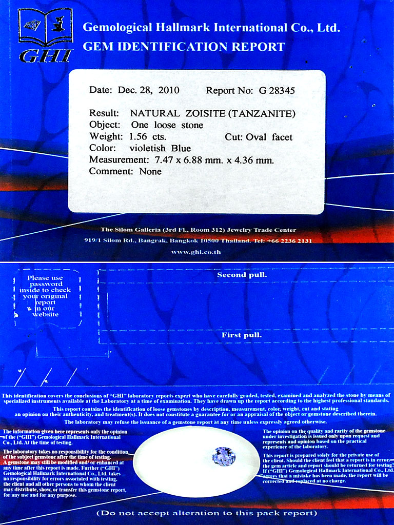 Certified Violetish Blue Tanzanite 1.56 Ct. Clean Oval Shape Natural Gemstone