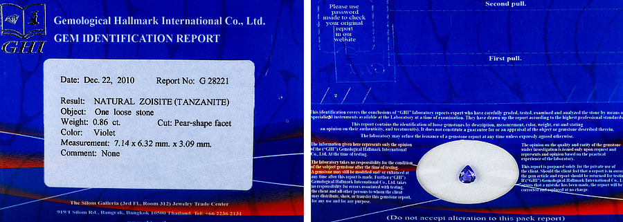 Certified Violet Tanzanite 0.86 Ct VVS Pear Shape Natural Gemstone From Tanzania
