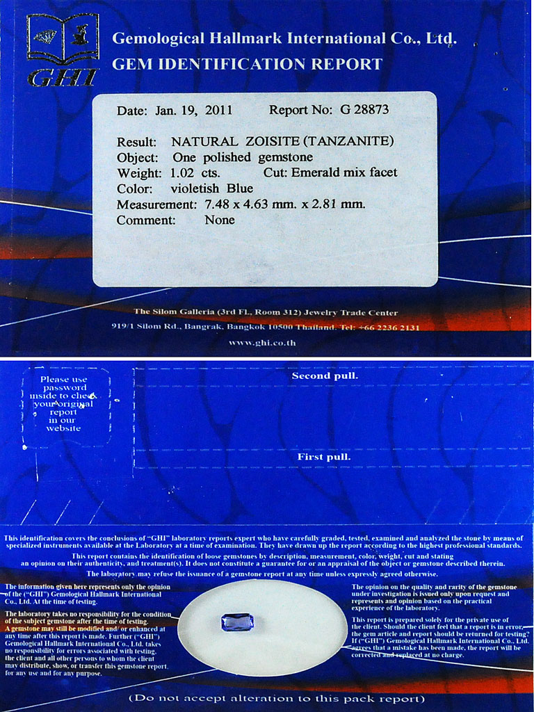Certified Violetish Blue Tanzanite 1.02 Ct. Clean Octagon Shape Natural Gemstone