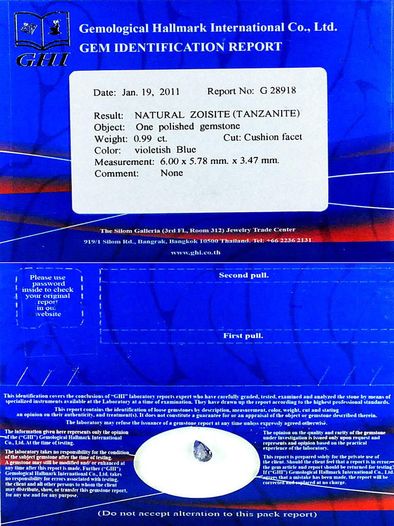 1.25 Ct. Pear Shape Natural Gemstone Violetish Blue Tanzanite From Tanzania