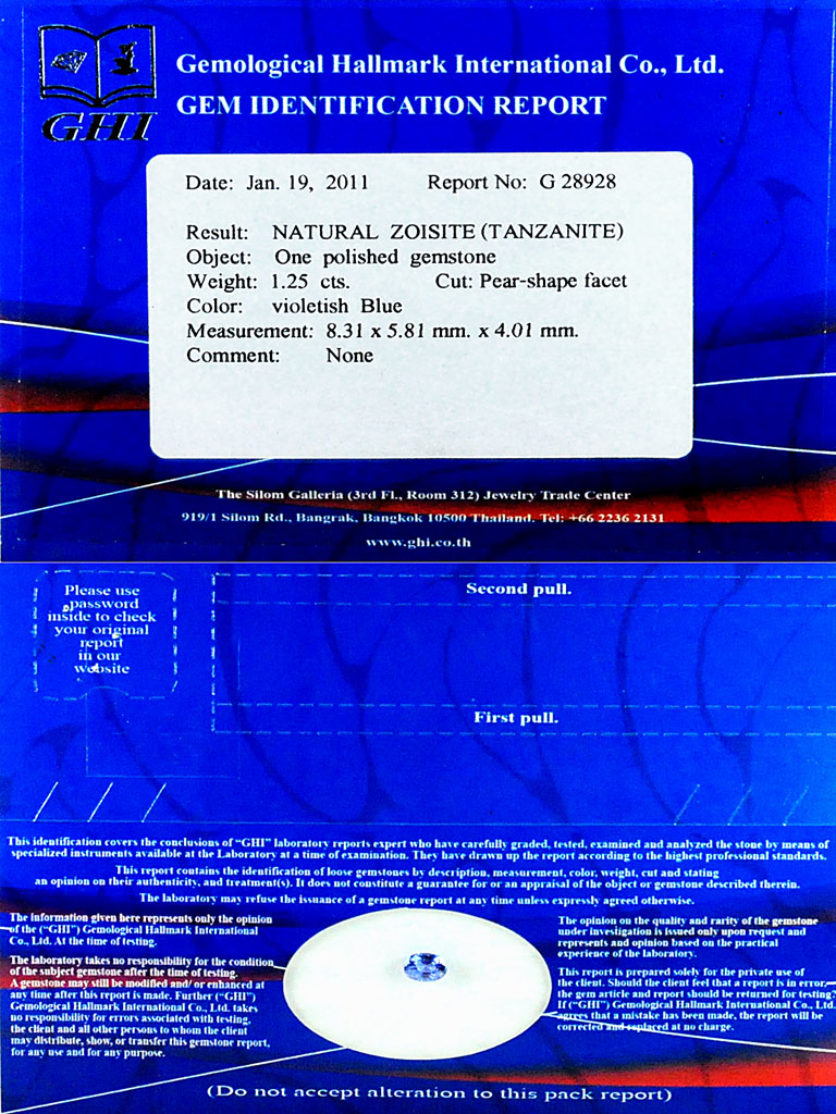 Certified 0.99 Ct. Natural Gem Violetish Blue Tanzanite