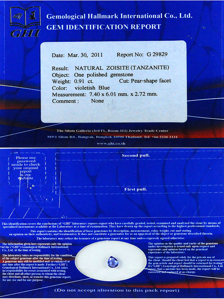 Certified Violetish Blue Tanzanite 0.91 Ct. Clean Pear Shape Natural Gemstone