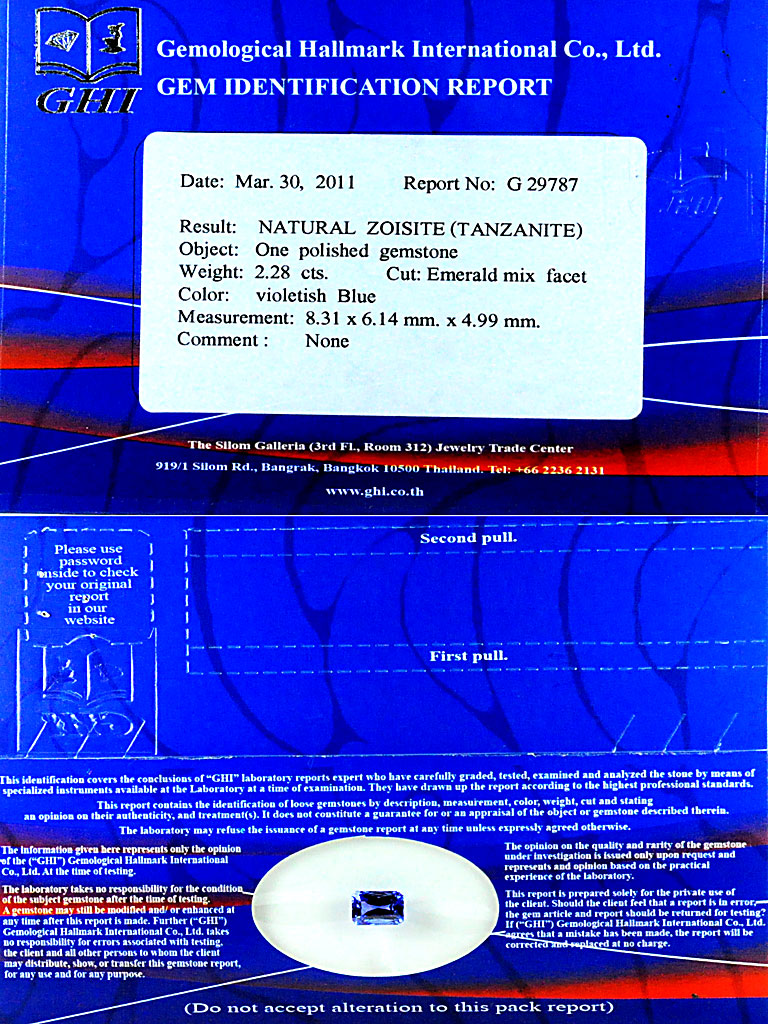 Certified Violetish Blue Tanzanite 2.28 Ct. Clean Octagon Shape Natural Gem