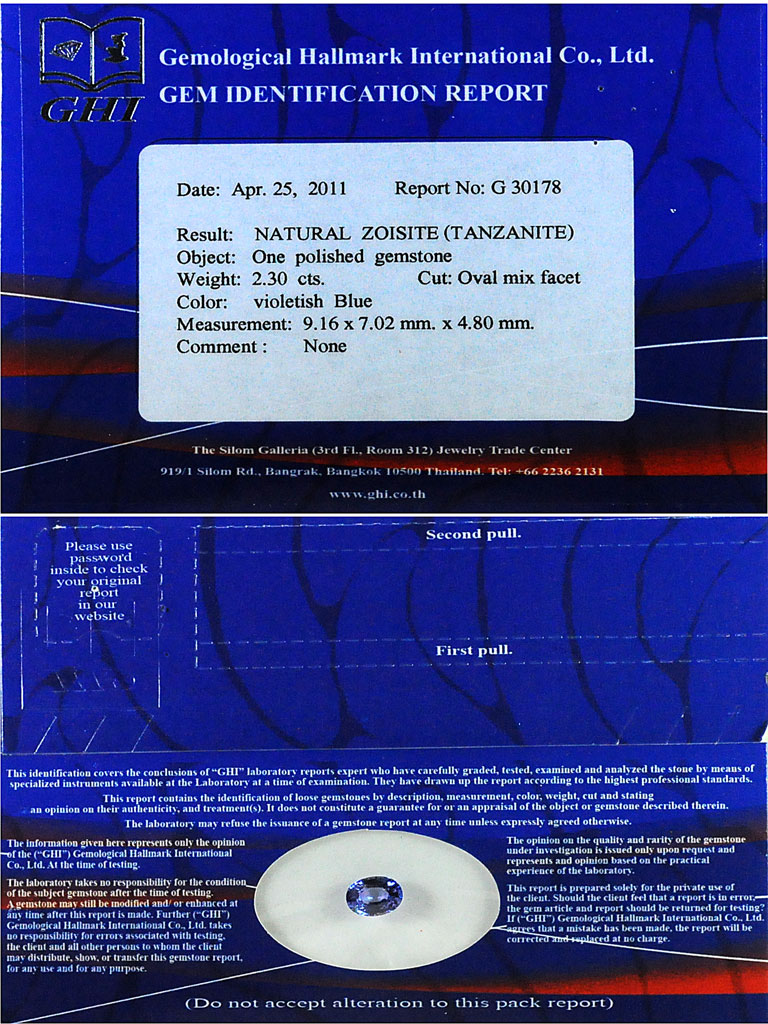 Certified Violetish Blue Tanzanite 2.30 Ct. Clean Oval Shape Natural Gemstone