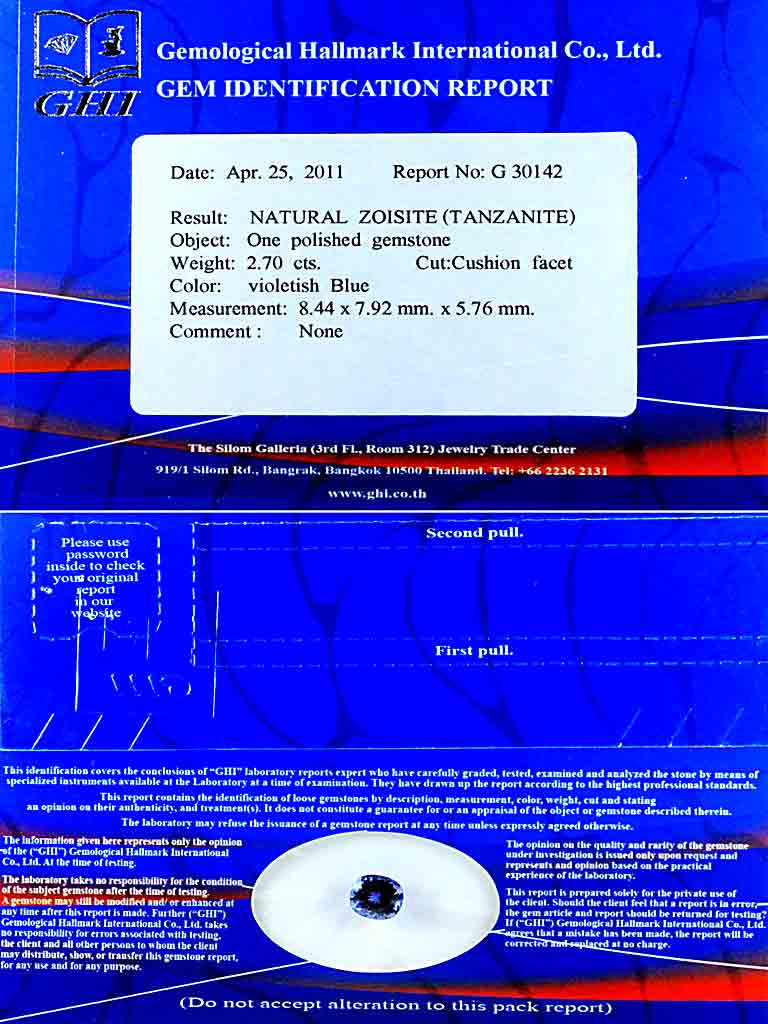 Certified 2.70 Ct. Clean Natural Gem Violetish Blue D Block From Tanzanite
