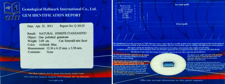 Certified 2.69 Ct. Clean Natural Gem Violetish Blue Tanzanite Octagon Shape