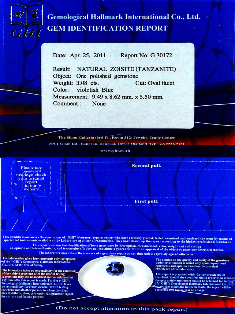 Certified Violetish Blue Tanzanite 3.08 Ct. Clean Oval Shape Natural Gemstone