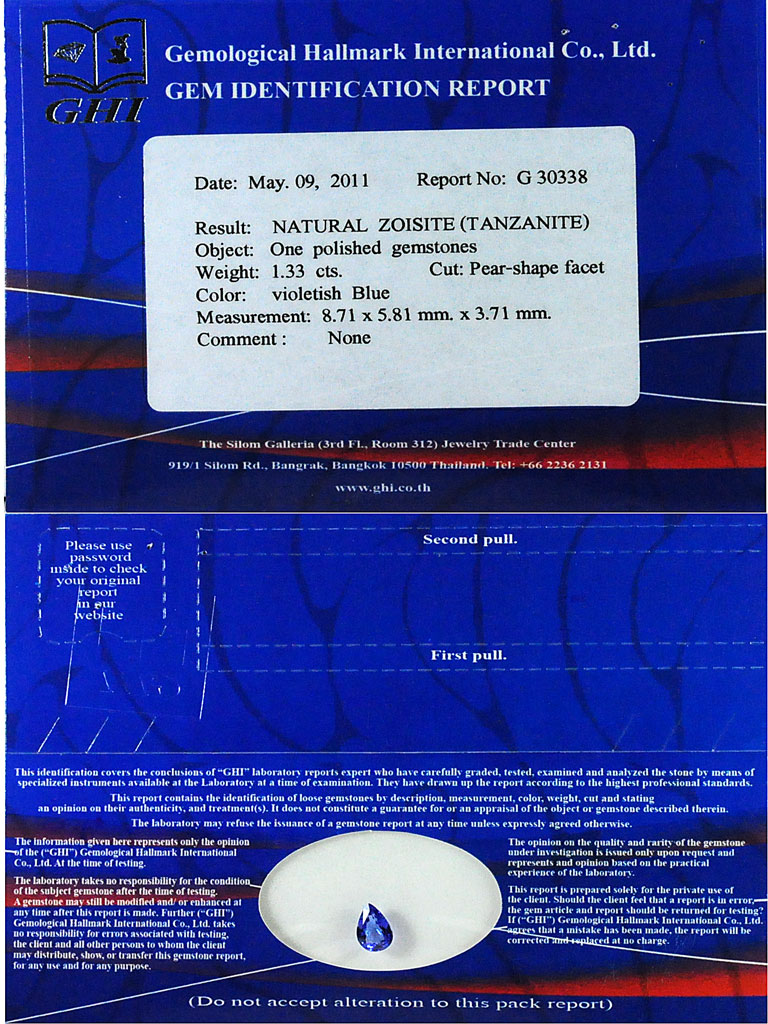 Certified 1.33 Ct. Clean Pear Shape Natural Violetish Blue Tanzanite Gemstone