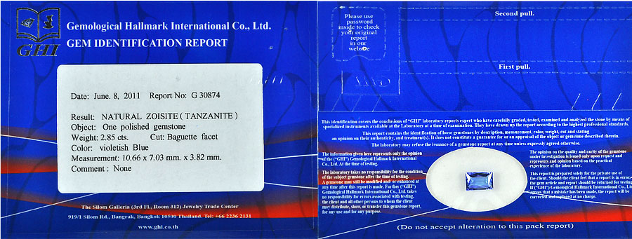 Certified Violetish Blue Tanzanite 2.85 Ct. Clean Baguette Natural Gemstone
