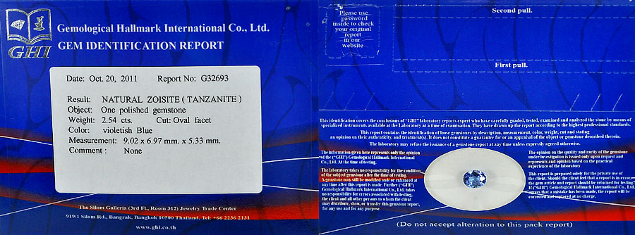 Certified Violetish Blue Tanzanite 2.54 Ct. Clean Oval Shape Natural Gemstone