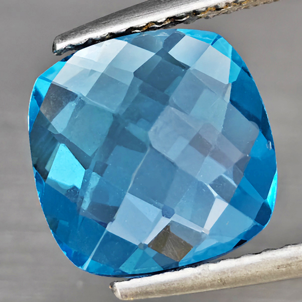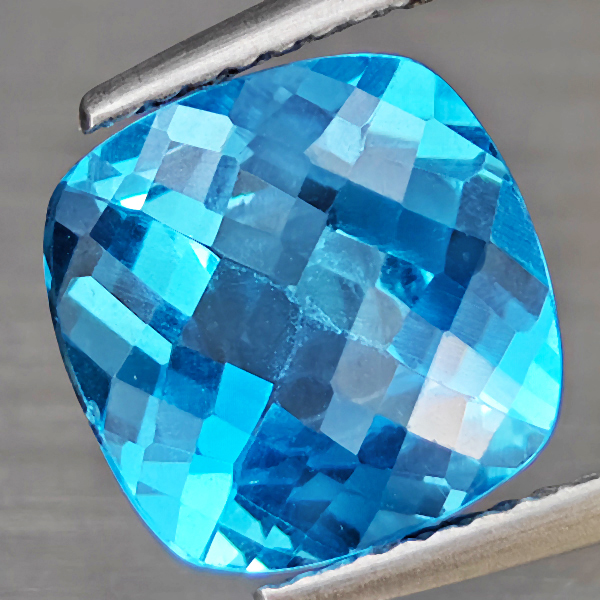 Natural Baby Blue Topaz 4.15 Ct. Cushion Checkerboard Cut 9.9 Mm Gemstone From Brazil