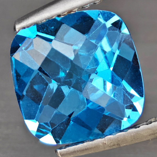 Natural Baby Blue Topaz 3.14 Ct. Cushion Checkerboard Cut 9 Mm Gemstone From Brazil