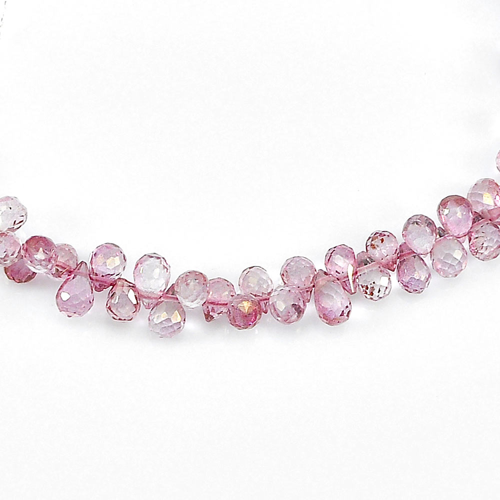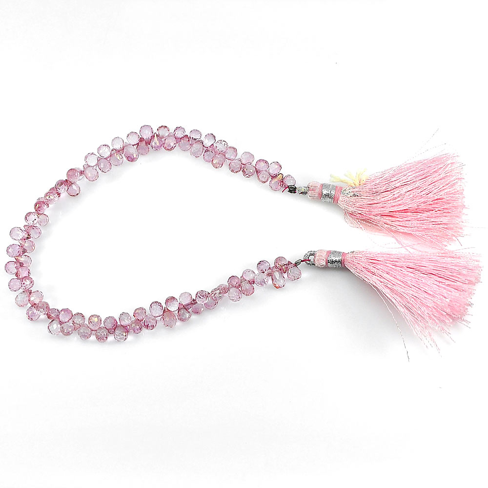 67.80 Ct. Briolette Shape Natural Gemstones Pink Topaz Beads Length 8 Inch