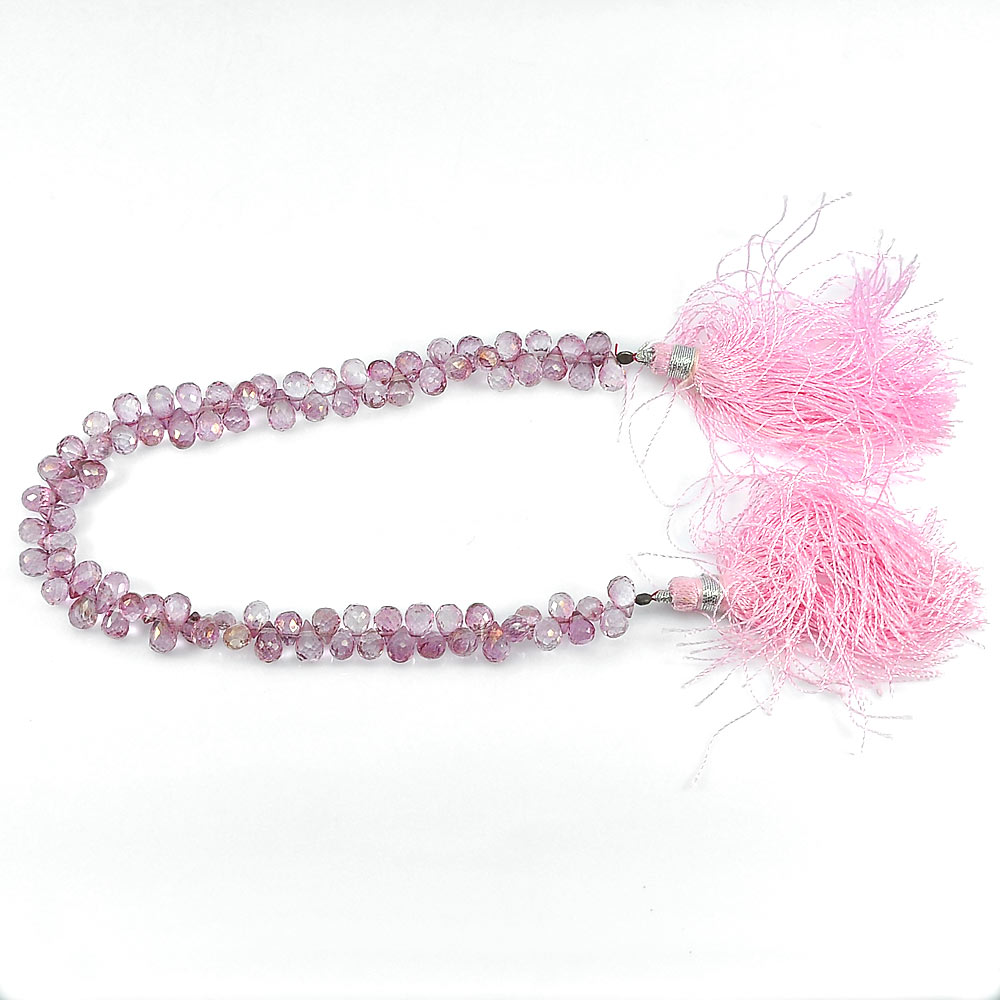 Natural Pink Topaz 87.30 Ct. Briolette Shape 8.3 x 4.6 Mm Beads Length 8 Inch.