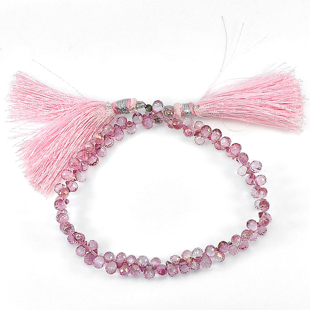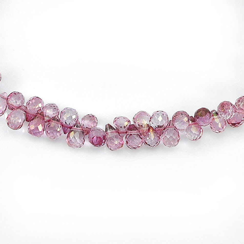 68.75 Ct. Briolette Shape Natural Pink Topaz Beads Length 8 Inch 6.7 x 3.8 Mm.