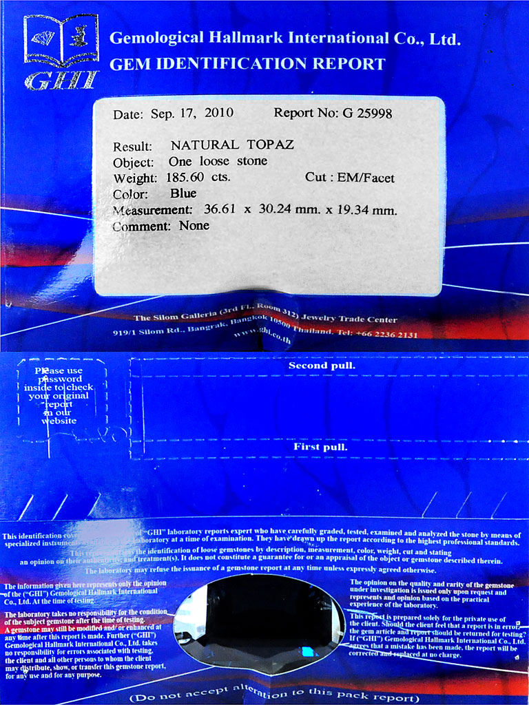 Certified London Blue Topaz 185.60 Ct Octagon 36.61 x 30.24 Mm Clean Natural Gem