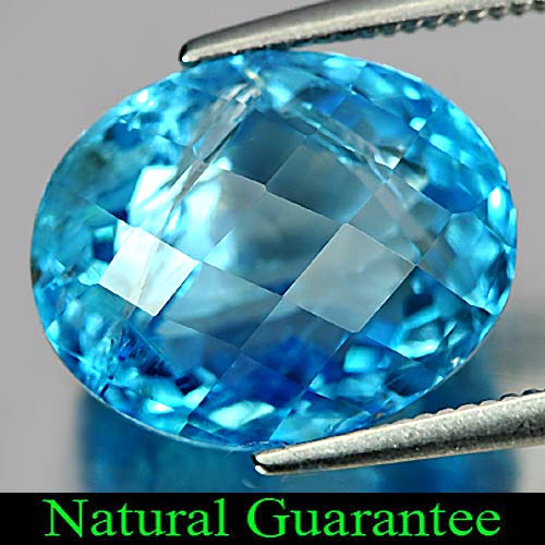 10.02 Ct. Good Oval Checkerboard Natural Gem Swiss Blue Topaz Brazil