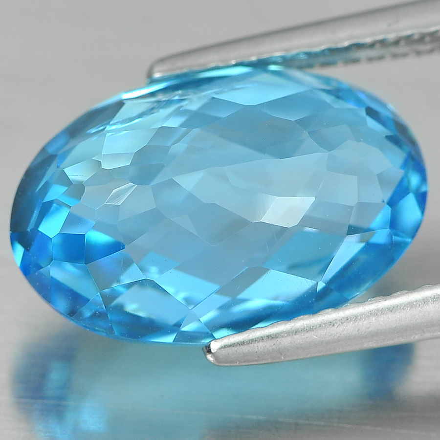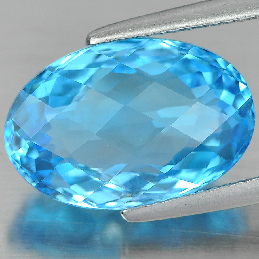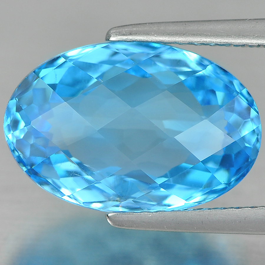 Swiss Blue Topaz 7.06 Ct. Oval Checkerboard 14.3 x 9.5 Mm. Natural Gem Brazil