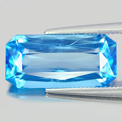 Topaz Swiss Blue 7.61 Ct. Octagon Shape 16.3 x 7.9 Mm. Natural Gemstone Brazil