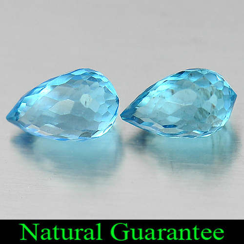 1.92 Ct. Stunning Pair Natural Gemstones Blue Topaz Briolette Shape