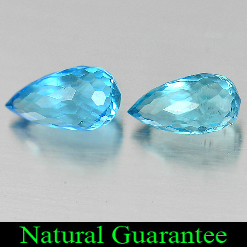 1.90 Ct. 2 Pcs. Briolette Shape Natural Gemstones Blue Topaz From Brazil