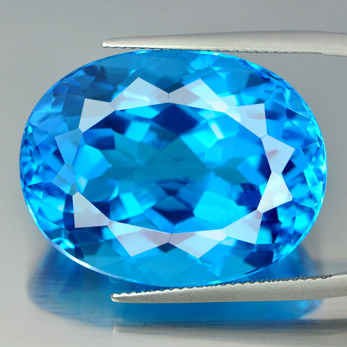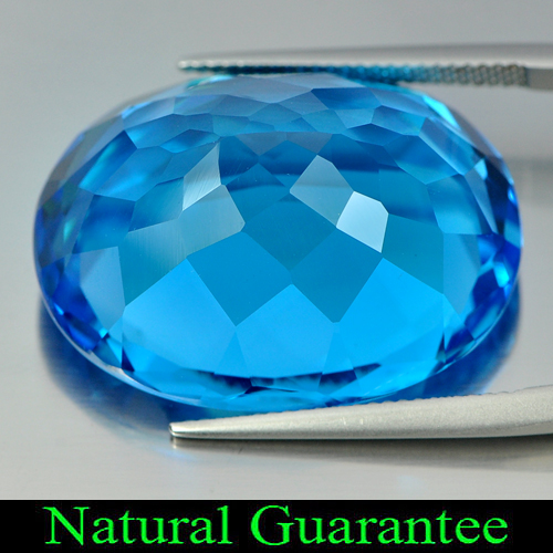 Swiss Blue Topaz 66.40 Ct. Clean Oval Shape 28 x 21 Mm. Natural Gemstone Brazil