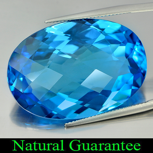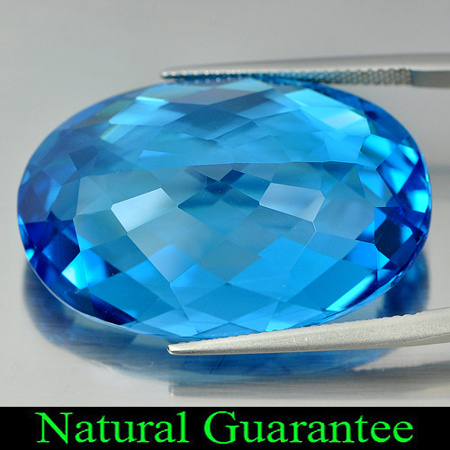 Attractive Gemstone 75.61 Ct. Natural Oval Checkerboard Swiss Blue Topaz