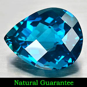 London Blue Topaz 100.45 Ct. Clean Pear Checkerboard 33 x 26 Mm Natural Gemstone