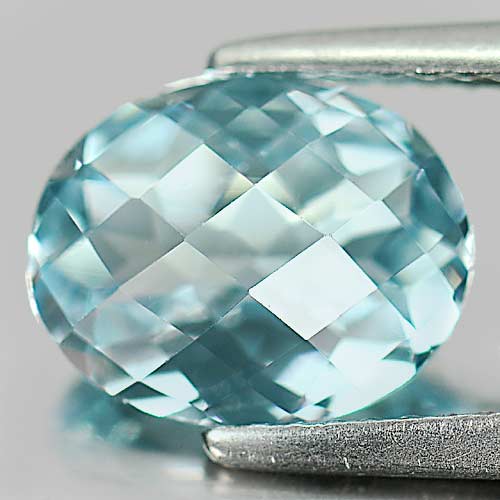 2.83 Ct. Natural Gemstone Swiss Blue Topaz Oval Checkerboard