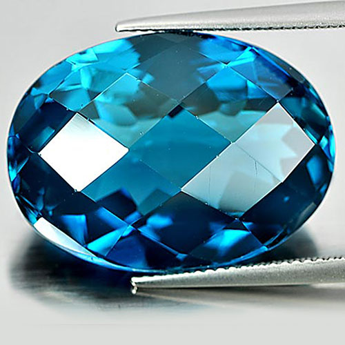 London Blue Topaz 42.49 Ct. Clean Oval Checkerboard 24 x 17.6 Mm. Natural Gem