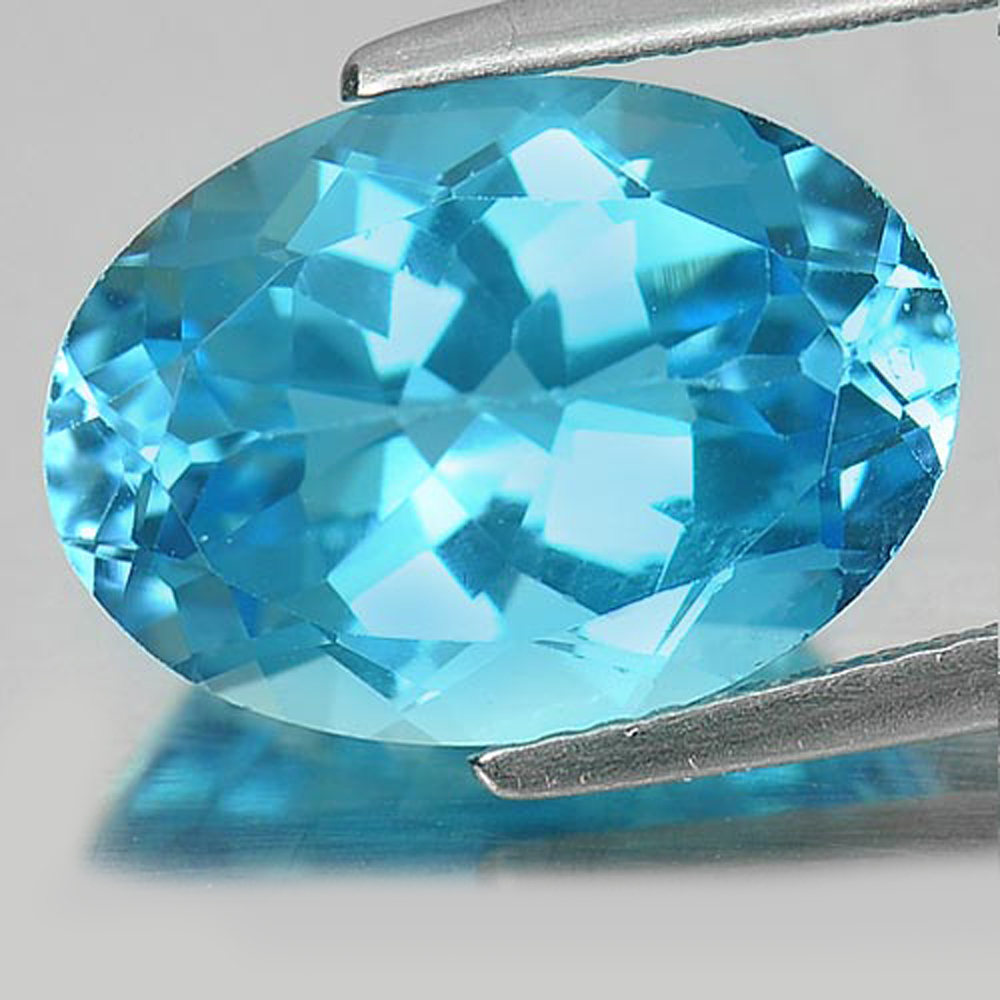 Swiss Blue Topaz 6.70 Ct. Oval Shape 14 x 10 Mm. Natural Gemstone From Brazil