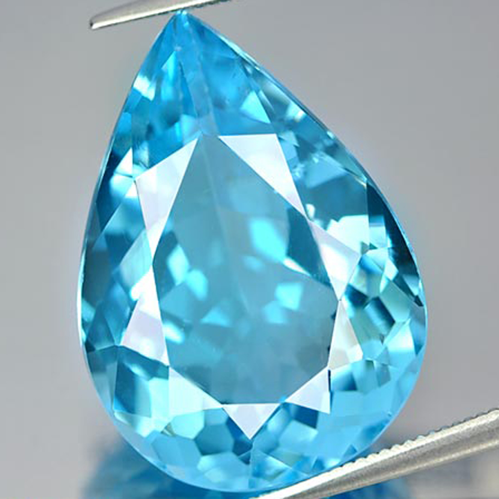 Swiss Blue Topaz 25.03 Ct. VVS Pear Shape 23 x 16.2 Mm. Natural Gemstone Brazil