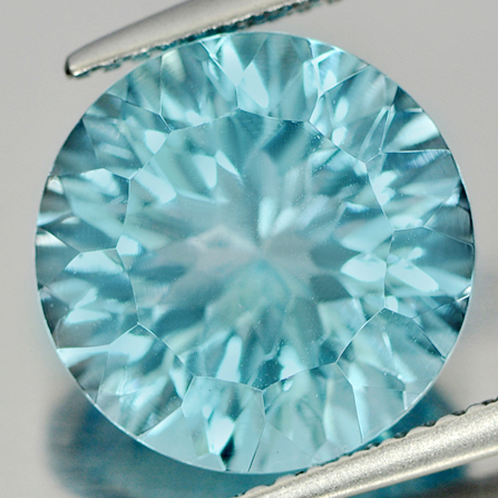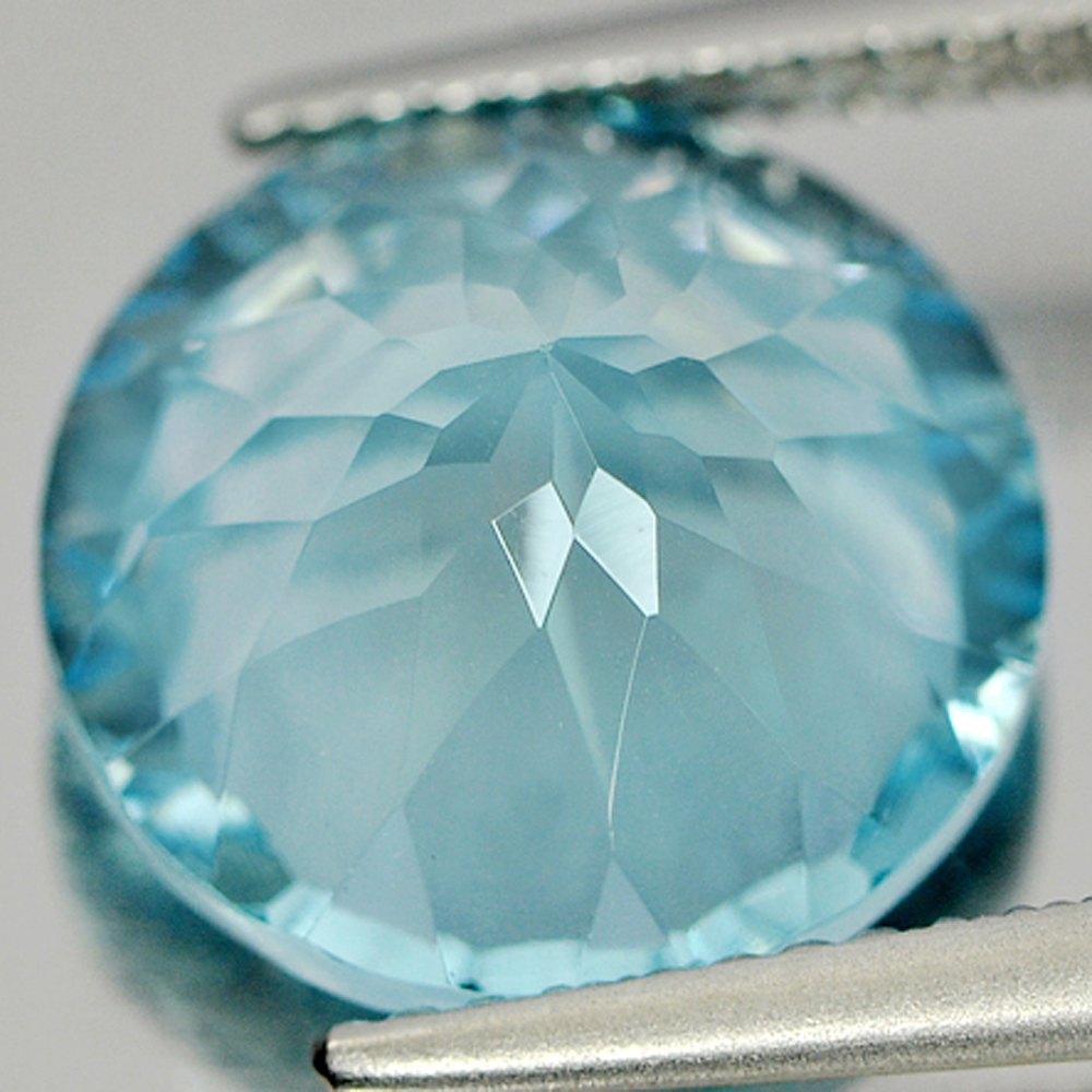 Blue Topaz 7.61 Ct. Clean Round Cornflower Cut 12 Mm. Natural Gem From Brazil