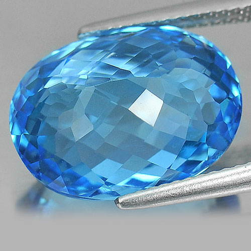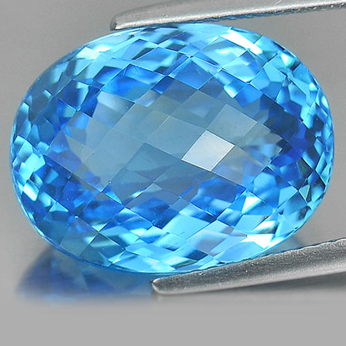 Topaz Swiss Blue 13.93 Ct. Clean Oval Checkerboard Cut 16 x 12 Mm. Natural Gem