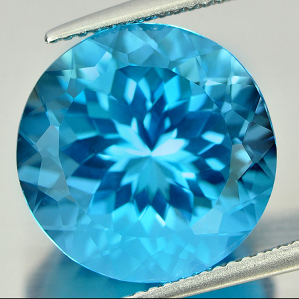 Swiss Blue Topaz 14.19 Ct. Clean Round Cornflower Cut 14.7Mm. Natural Gemstone