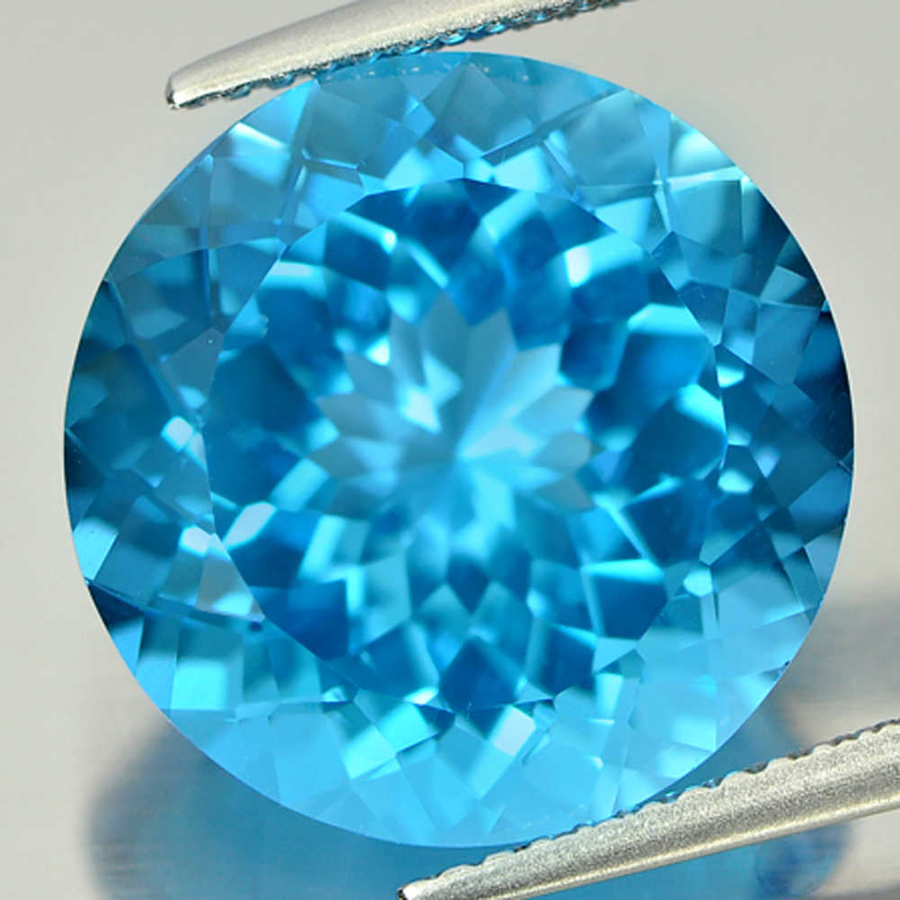Swiss Blue Topaz 13.50 Ct. Clean Round Cornflower Cut 14.9 Mm. Natural Gemstone