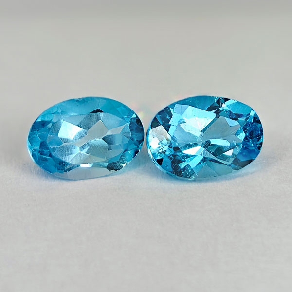 Natural Gems Swiss Blue Topaz 1.96 Ct. 2 Pcs. Oval 7 x 5 x 3.7 Mm. From Brazil