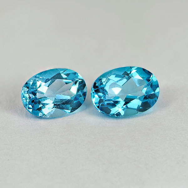 Natural Gems Swiss Blue Topaz 1.97 Ct. 2 Pcs. Oval 7 x 5 x 3.5 Mm. From Brazil