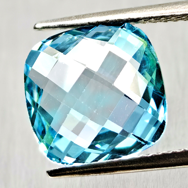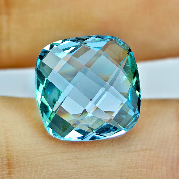 Natural Swiss Blue Topaz 5.79 Ct. Cushion Checkerboard Cut 11.1 Mm Gemstone