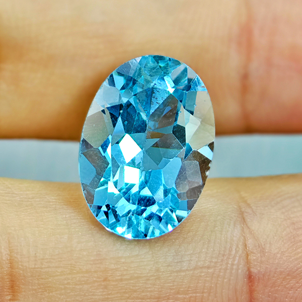 Natural Swiss Blue Topaz 7.73 Ct. Oval Shape 14.1 x 10.2 Mm Gemstone From Brazil